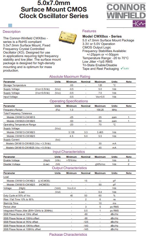| CWX813-033.333M | Connor-Winfield | CWX813 | 33.333MHz | -20°C ~ 70°C |