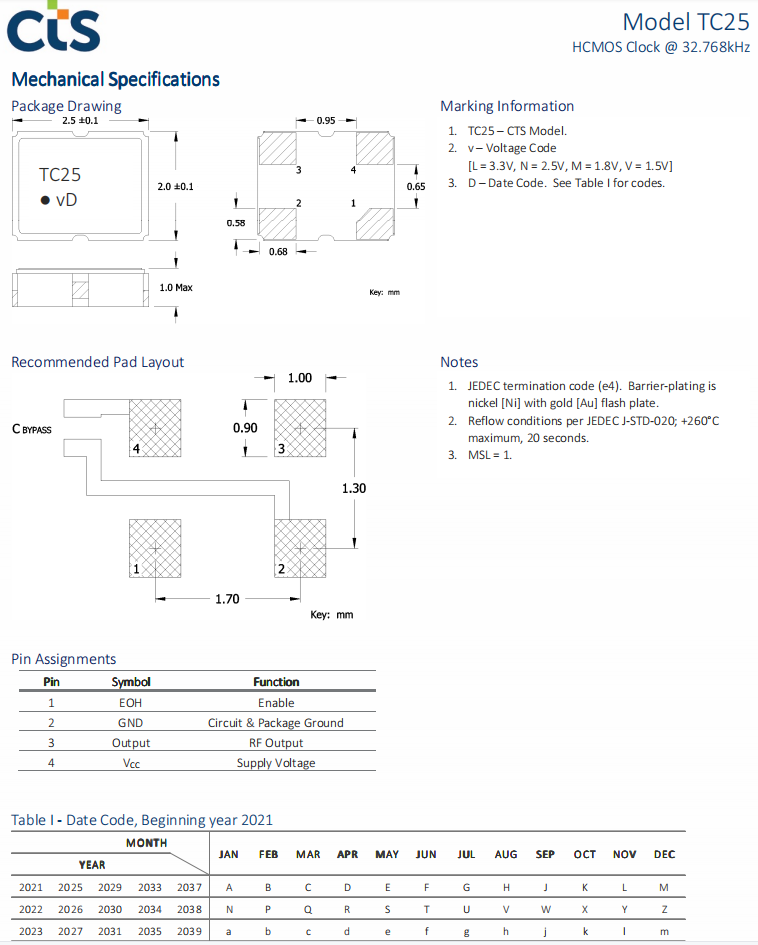 | TC25M3C32K7680 | CTS晶振 | TC25 | 32.768kHz | ±50ppm | 4-SMD, No Lead |
