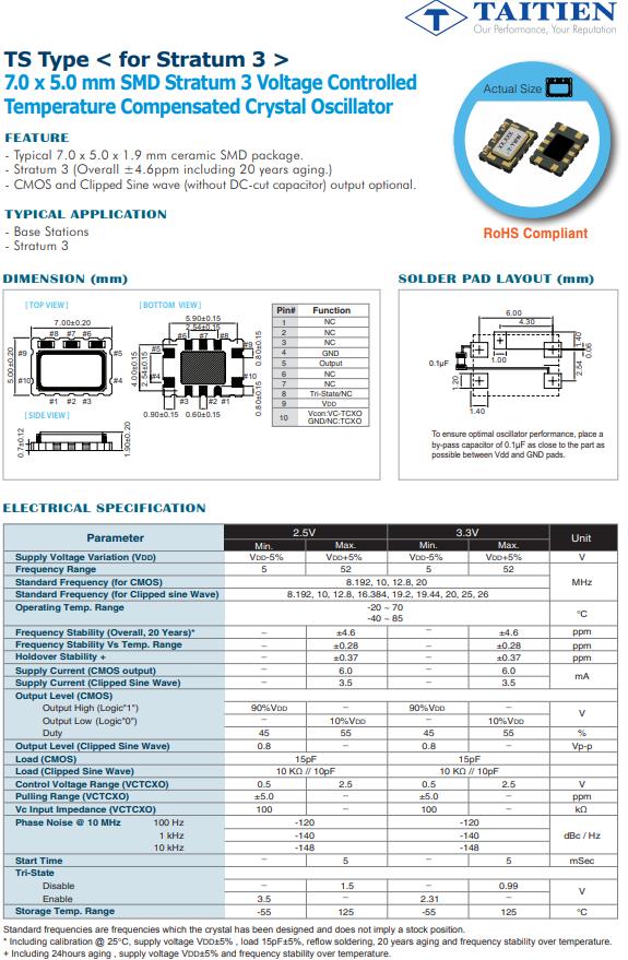 | TSETTCSANF-20.000000 | Taitien | TS | TCXO | 20MHz | 2.8 V ~ 3.3 V |