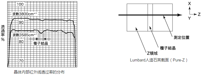 特點:這是一種人工晶體,通過長期控制其生長速度從頭到尾溫和地生長.在整個Z范圍內可以獲得0.024或更小的穩定紅外吸收系數α3585(紅外Q值:300萬或更高).特別適用于高穩定晶體振蕩器中使用的石英晶體諧振器.