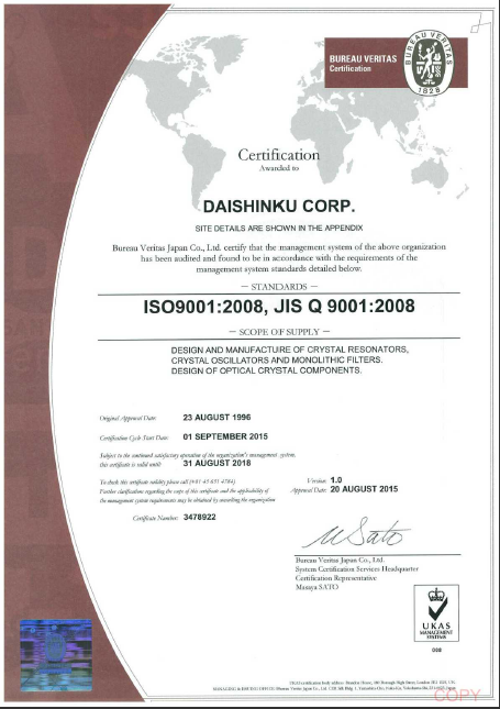 - [2019-02-21]NDK Crystal蘇州工廠ISO9001證書